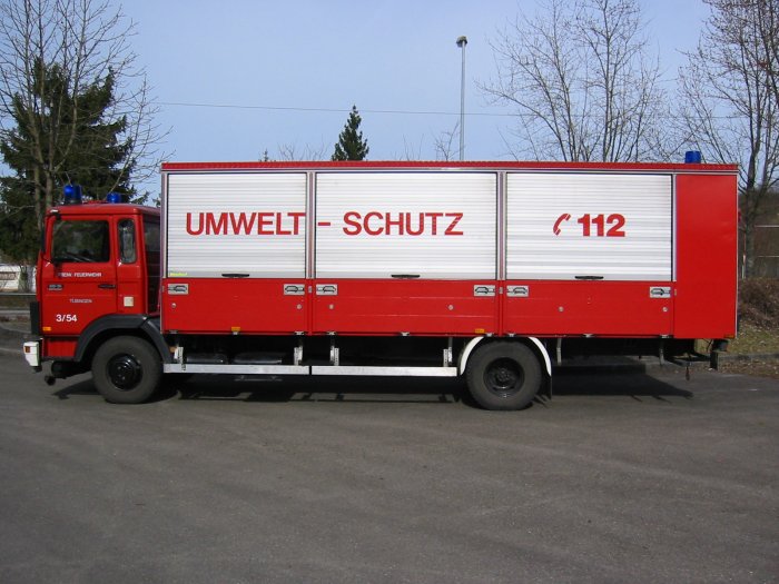 - 4 Atemschutzgeräte 300 bar (Einflaschengeräte ) - 4 Atemluftflaschen in Reserve - 6 Schutzanzüge hohe Schutzstufe ( Tesimax ) - 6 Schutzanzüge mittlere Schutzstufe - Tragbarer Stromerzeuger 5KVA - Wassersauger - Gefahrgutliteratur ( Hommel, usw. ) - Verschiedene Abdichtkisssen - Mehrere Auffangbehälter ( Gesamtvolumen 36000 Liter ) |