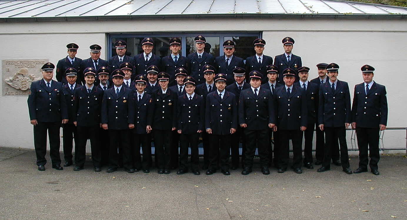 der bürgerlichen Gremien, als Pflichtfeuerwehr. Die heutige Bezeichnung ist: "Freiwillige Feuerwehr Tübingen Abteilung Derendingen". Die Mannschaft setzt sich zur Zeit wie folgt zusammen. Stand 01.01.2003: Aktive: 28 Feuerwehrmänner, 1